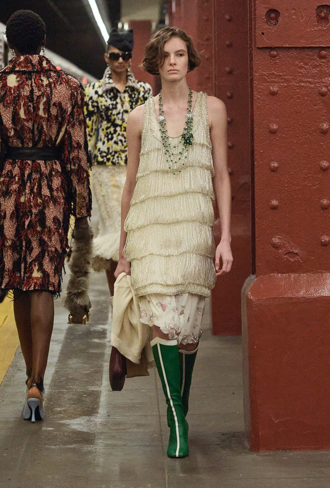 Для своей первой коллекции Métiers d’Art в роли креативного директора Маттье Блейзи выбрал неожиданное место вдохновения — нью-йоркское метро. Показ начался символично: поезд останавливается на станции Bowery, двери открываются, и зритель буквально попадает в подземный мир Chanel.